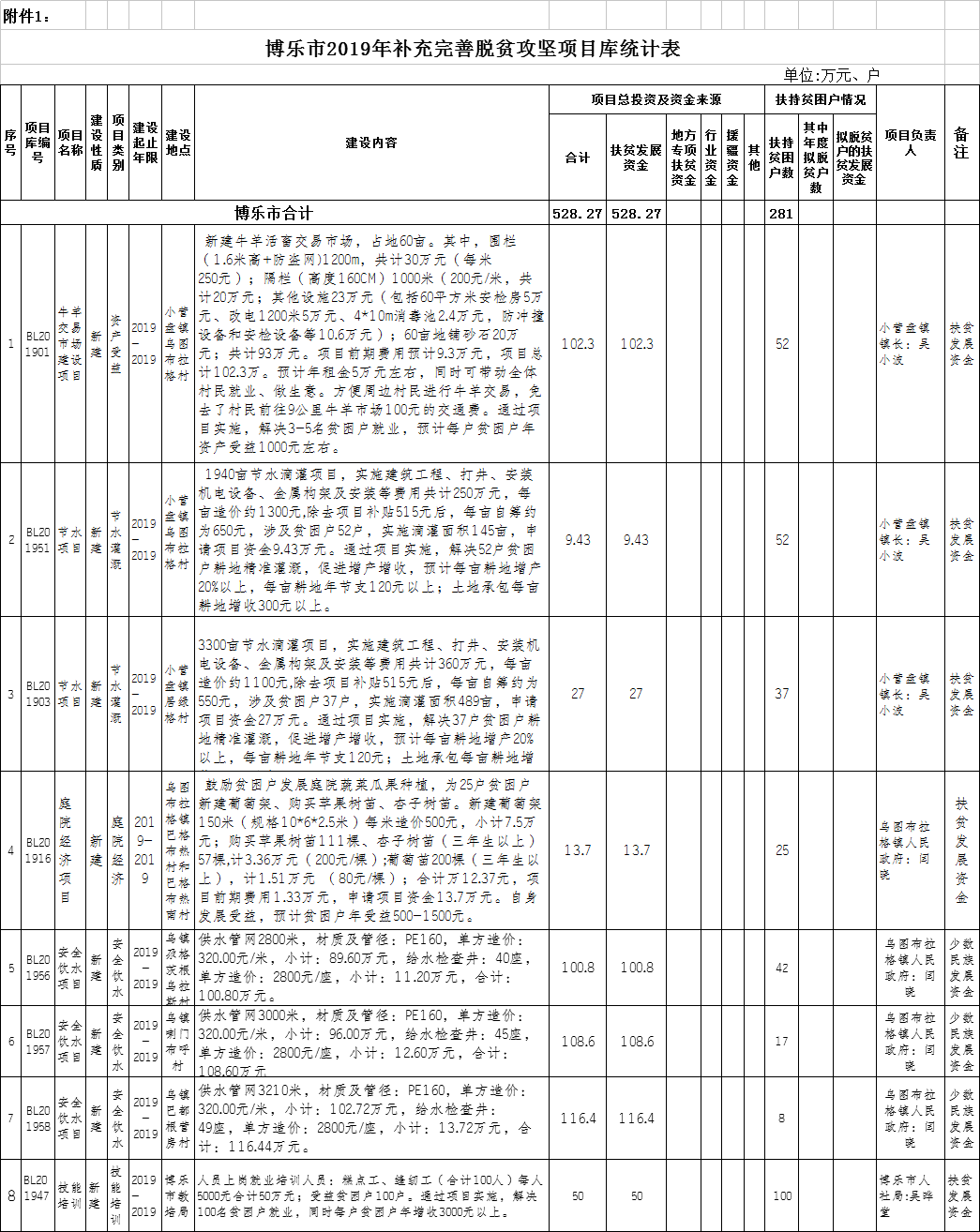 附件:博乐市2019年补充完善扶贫资金项目库备案表