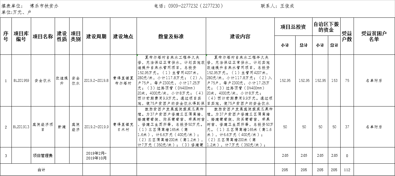 2019年财政专项扶贫资金(发展资金)项目台帐(205万元)