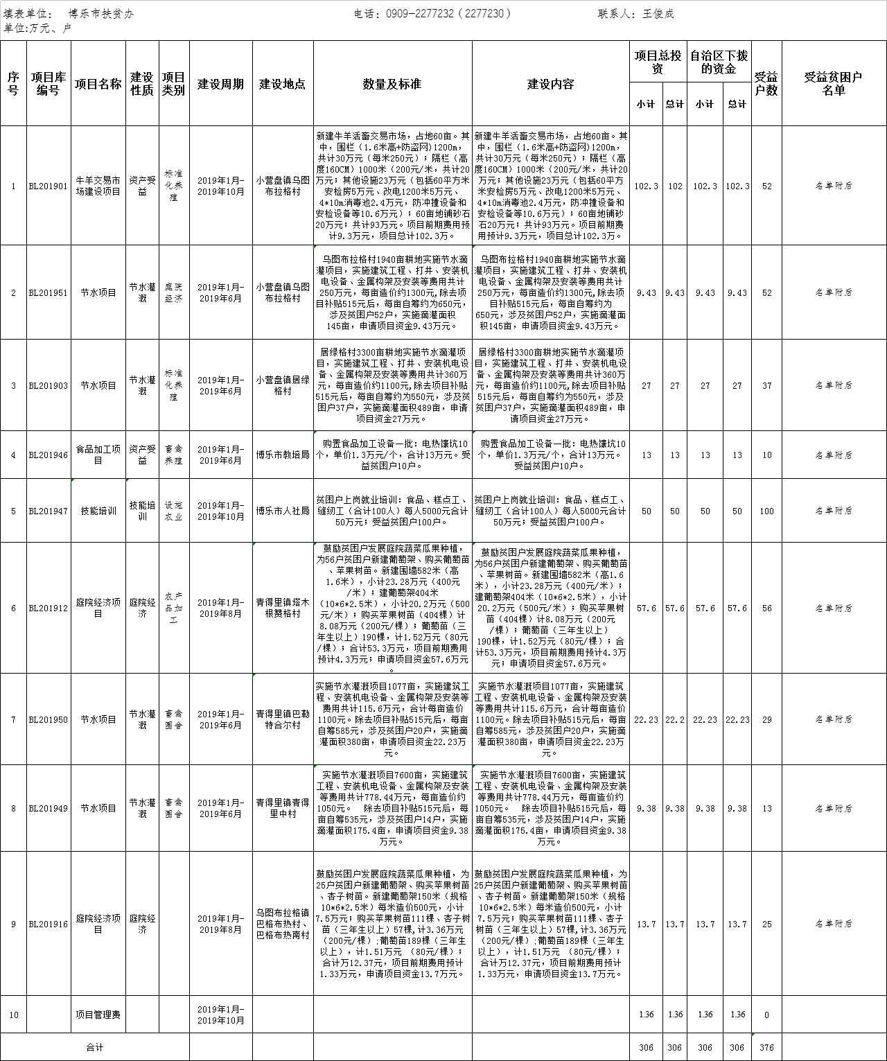 2019年财政专项扶贫资金(发展资金)项目台帐(306万元)
