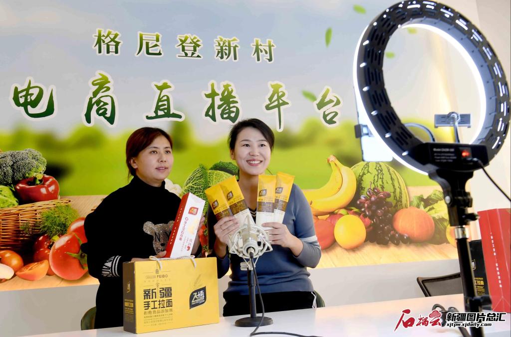12月21日,博乐市委宣传部驻乌图布拉格镇格尼登新村“访惠聚”工作队队员直播推介当地农副产品。