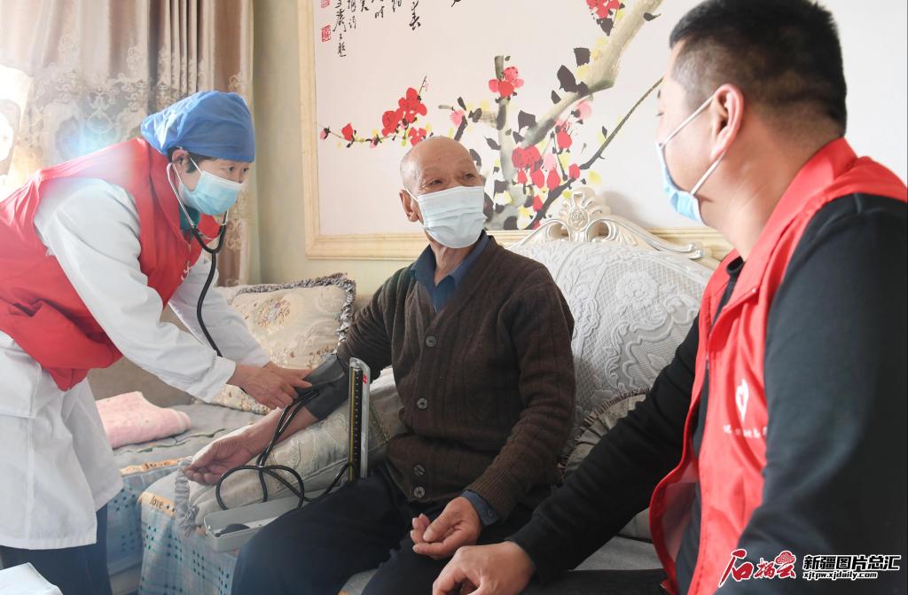 12月21日,博尔塔拉蒙古自治州博乐市乌图布拉格镇格尼登新村党员志愿服务队队员上门为村民提供志愿服务。
