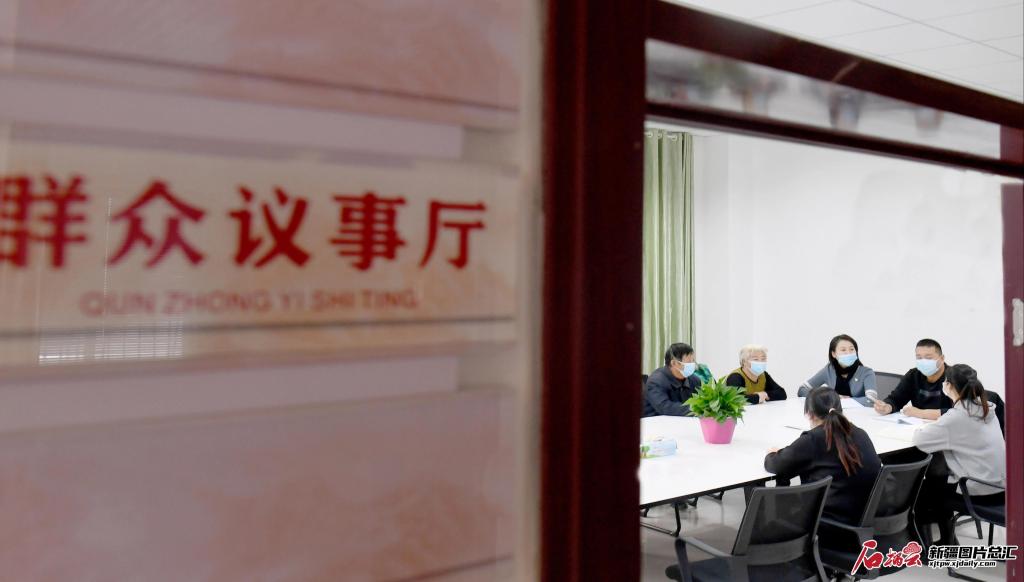 12月20日,“访惠聚”驻村工作队队员、村干部和村民一起在博尔塔拉蒙古自治州博乐市乌图布拉格镇格尼登新村群众议事厅共商明年发展思路。