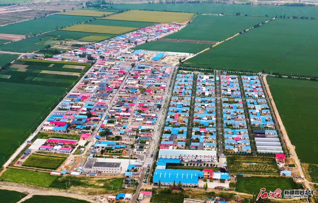 博尔塔拉蒙古自治州博乐市乌图布拉格镇格尼登新村全貌(8月6日无人机拍摄)。