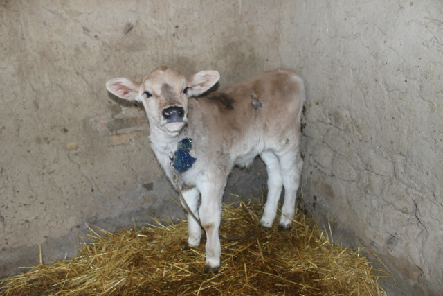 在5户贫困户的精心饲养和工作组成员的技术帮扶下,10头精准扶贫周转奶牛茁壮成长。更让大家高兴的是,近日阿布里克木家的一头牛产下了一头小公牛犊。