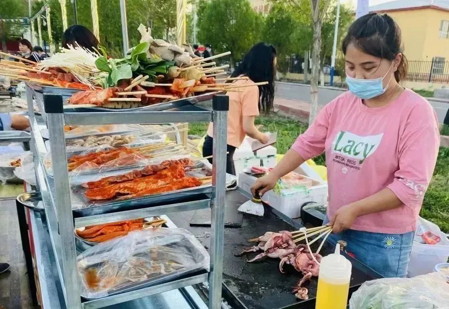 “没想到村里还有个夜市,各种小吃不仅味道好还特别卫生,这家的烧烤很攒劲,价格也实惠,来晚了很多人都吃不上呢!”博乐市市民李建军一边吃着烤串一边说。