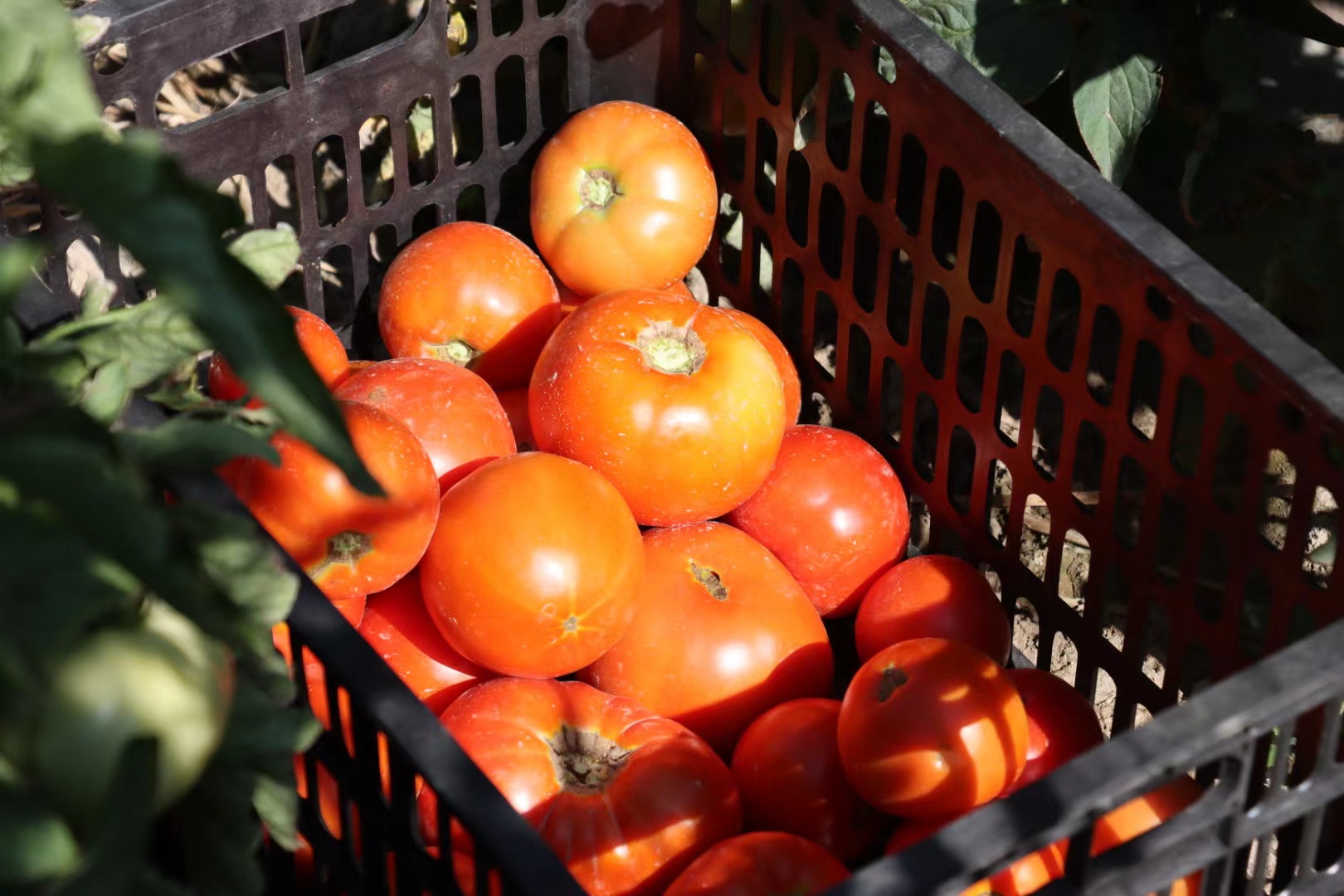 走进呼和浩特呼尔村,郁郁葱葱的西红柿藤蔓连成一片,田地里,一人多高的西红柿植株有序排列,碧绿的藤蔓上挂着一颗颗圆润饱满的西红柿,果红叶绿甚是喜人。活动中,干部们有序地帮助村干部采摘、搬运,放眼望去,一个个火红的身影忙碌地穿梭在碧绿的藤蔓间,勾勒出一幅丰收的热闹景象,现场一片喜气洋洋。
