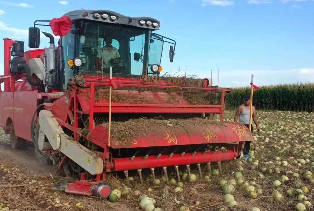 8月24日,小营盘镇托里布拉格西村迎来了打瓜成熟季,放眼望去,田间地头到处呈现一片繁忙的丰收景象。