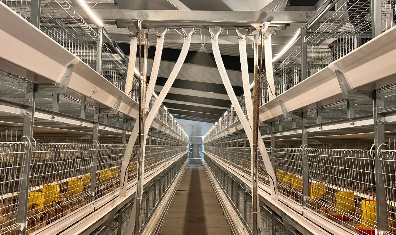 近日,记者来到博乐市贝林哈日莫墩乡新塔拉村肉鸡养殖项目现场看到,多栋鸡舍的基础部分已完成,其中1栋鸡舍已正式投产,在养殖棚内,一排排鸡笼整齐有序,5000羽黑鸡、20600羽良凤花鸡鸡雏正在进食。与传统养鸡场不同的是,棚内恒温33度左右,干净整洁无异味,而且全部实现了自动上料、自动上水、自动换气、自动照明、自动清粪一体的全自动化作业。据现场负责人介绍,鸡舍采用电锅炉采暖,热效率高且具有超清洁环保的特点,不存在大气和噪音污染,更环保。