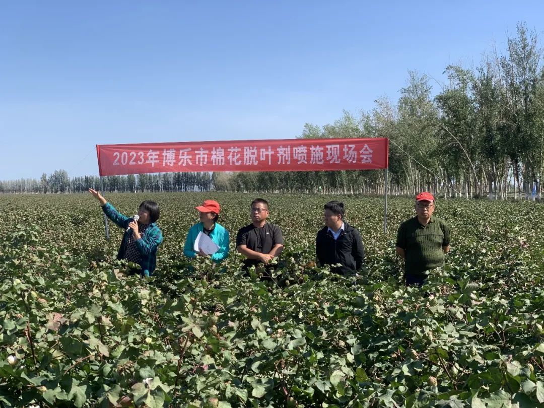 博乐市各乡镇棉花逐步开始吐絮,即将进入大规模采摘期。博乐市为提高棉花脱叶率,采收高品质棉花,于9月9日,召开棉花脱叶剂喷施现场会,做好后期棉花采收服务保障工作。