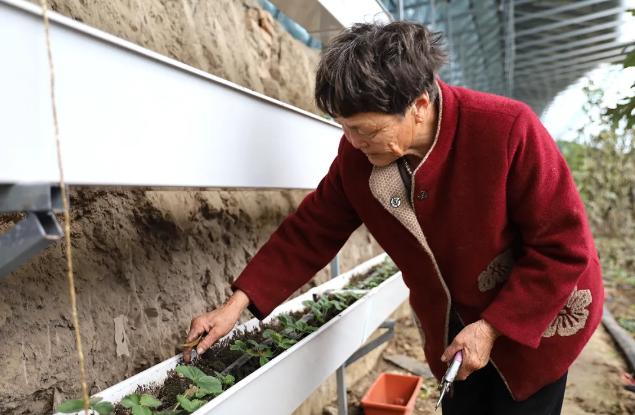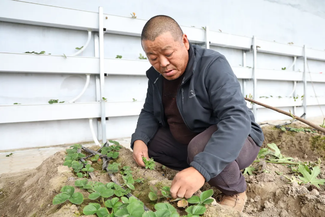 决肯村草莓种植户田新征正在大棚里忙着不亦乐乎,一边清理无花果树的落叶,一边给草莓地除草。田新征告诉记者,自己几年前就种过草莓但由于经验不足,产量和效益都不好。这次他赴库车深入学习草莓栽培技艺,并从伊犁购入了5500株精选的“甜查理”草莓苗。结合无花果套种与高架种植的方式,创造性地利用有限空间,提升了土地利用率,还可以实现草莓和无花果的周年采摘,提高经济效益。