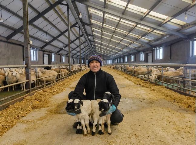 “‘杜湖杂交肉羊’集湖羊的多胎、高产、抗湿热能力与杜泊羊的不挑食、生长迅速、肉质鲜美等优点于一身。”博乐市索托依生态养殖专业合作社弓博强介绍道:“我们深入养殖户家中,了解养殖情况,传授接羔育幼知识,提供多胎羊养殖技术指导。”阿斯哈尔别克是一名兽医,也是香班哈日根的村民,自从去年4月份引进湖羊以来,一直在该养殖场做工,主要负责湖羊的防疫卫生、草料配比、羔羊育种及喂养羊群等技术工作,和她一起在养殖场工作的总共有4个人。