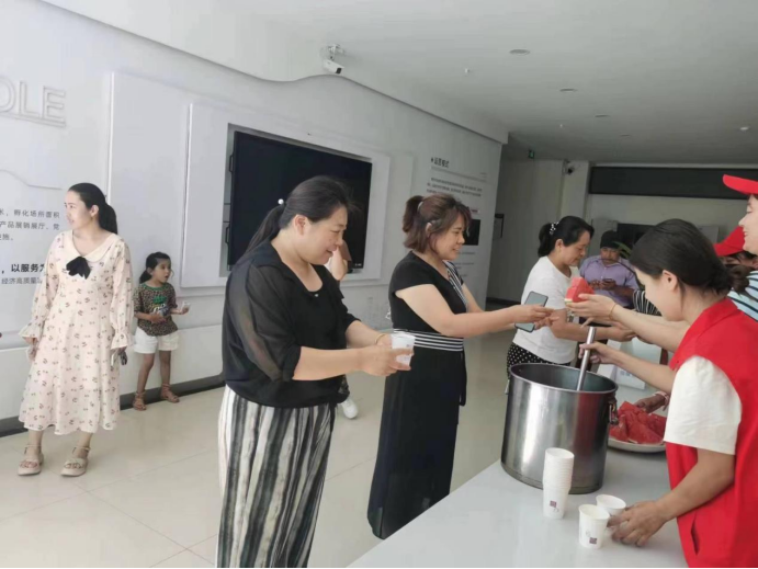 近日,博乐市创业孵化基地开展“为企优环境、夏日送清凉”活动把清凉的关怀送至创业孵化基地入驻企业,为入驻企业员工送去绿豆汤、西瓜等防暑降温物品,并与企业负责人亲切交流,详细了解企业生产经营等情况,主动询问企业生产存在困难,叮嘱企业负责人切实做好防暑降温工作和人身安全保障,确保安全顺利度过炎热季节。