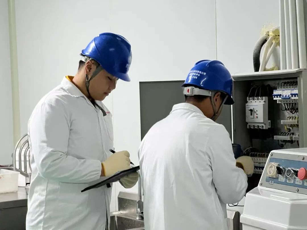 生产车间内,自动分馅机、自动排盘机、自动烘烤隧道炉、自动旋转包装机等机器正不停运转,国网博尔塔拉供电公司城区供电中心达勒特镇供电所为确保企业的电力供应正常,开展车间线路检查、电流测试等工作,核查烤箱、包装生产、库房等主要生产设备的接线和运行情况,发现隐患及时配合给予处理。同时,国网博尔塔拉供电公司城区供电中心达勒特镇供电所党员服务队队员还为心坊食品加工厂内的生产人员讲解用电安全知识,全力保障中秋节前的生产用电。
