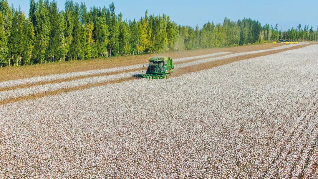 采棉机在采收新棉。于苏甫·艾尼 摄