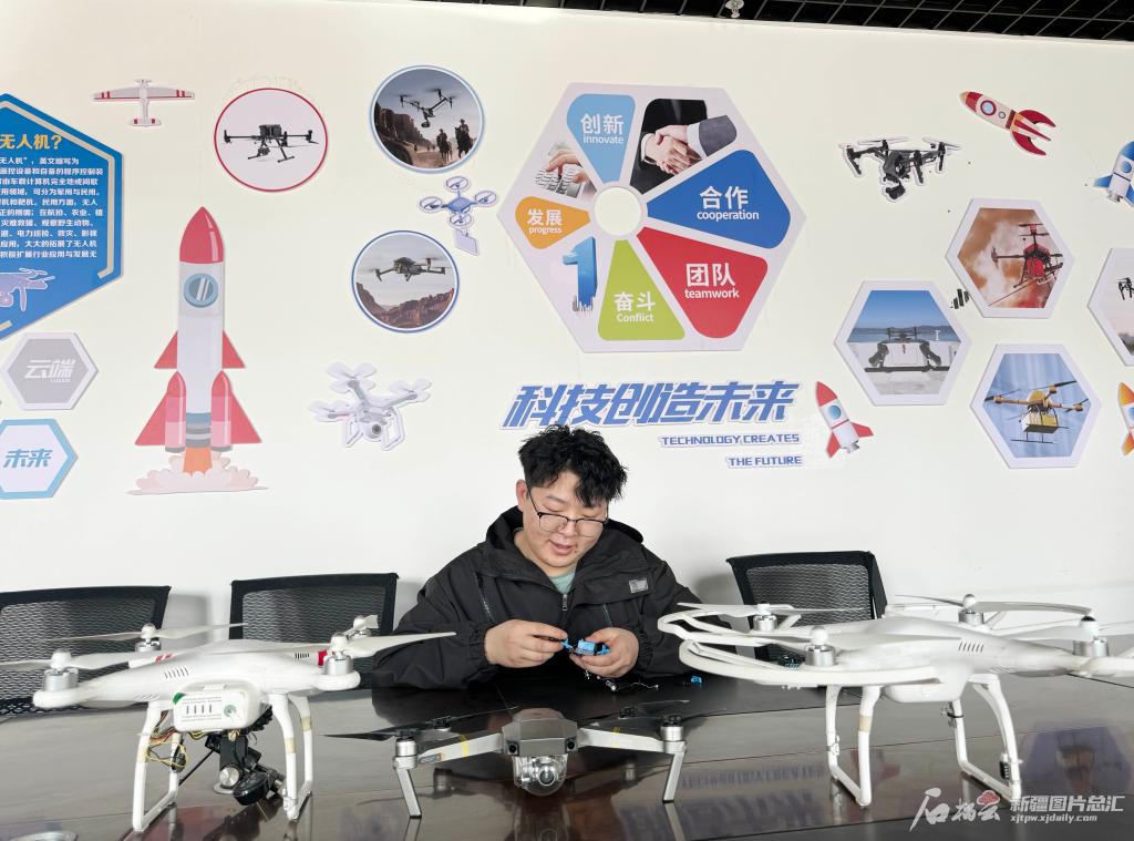 2022年8月,吕浩宇回到家乡新疆博尔塔拉蒙古自治州博乐市。虽然所有相关资质材料都备齐了,但资金短缺、场地难找等问题让他一筹莫展。有一天,他从社区了解到,博乐市创业孵化基地为应届大学毕业生提供3年免房租政策支持,于是他赶紧把这个好消息分享给了另一名“00后”伙伴。经过实地考察后,两人于2023年4月成立了新疆京瀚科技服务有限责任公司(以下简称“京瀚科技”),建起了博乐市第一家无人机培训基地。