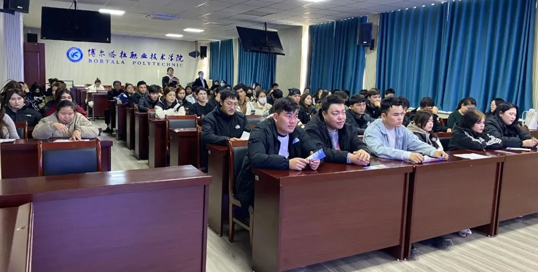 11月14日,博乐市人力资源和社会保障局在博尔塔拉职业技术学院行政楼开展人社政策进校园活动。
