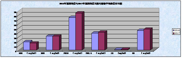 NO2日均浓度范围为0.012~0.061mg/m3,季均浓度为0.020mg/m3,与上年同期相比持平;