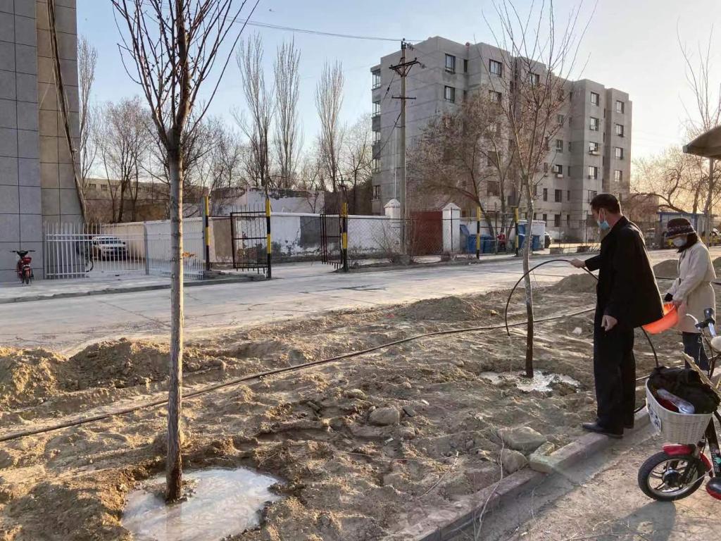 活动中,社区干部们分工合作、积极配合,对公共绿地进行了杂草清理、苗木浇灌等工作。经过一个小时的奋战,圆满完成了公共绿地苗木浇灌工作,使经过冬日风雪洗礼的绿地苗木重新焕发生机,切实为周边绿化、美化、生态环境保护工作夯实了基础。