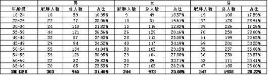 表16博乐市不同年龄、性别人群肥胖率(%)