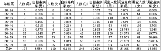 ㈡糖尿病应引起高度重视。博乐市18岁及以上成年人群糖尿病患病率5.42%,且患病率同样随着年龄增高而上升,50岁以上人群糖尿病患病率明显上升,是重点防控对象。