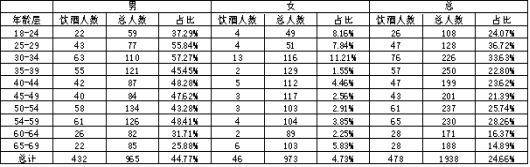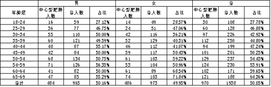 表17博乐市不同年龄、性别人群中心性肥胖率(%)