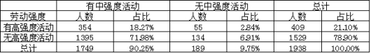 ㈥加强投入健康支持环境的建设。18岁及以上成年人群中,参加高强度活动的人数为409人,占21.10%;参加中等强度活动的人数为1749人,比例为90.25%;交通性身体活动1501人,占77.45%;休闲性高强度身体活动184人,占9.49%,休闲中等强度运动和休闲活动386人,占19.92%。对于办公室工作人员而言,体育锻炼能缓解腰椎病、颈椎病、肩周炎等各种慢性病症状,并且对高血压、糖尿病、冠心病的康复也有非常大的促进效果。因此,对于体育活动的加强是博乐市慢性病防控的重点策略之一。政府需要进一步投入建设健康步道,健康主题公园等健康支持环境,鼓励居民加强体力活动,营造全民健康生活方式的氛围,创造良好的条件。