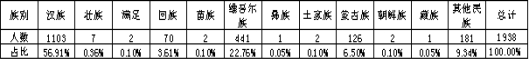 汉族占56.91%,维吾尔族占22.76%,蒙古族占6.50%,壮族、满族、苗族、彝族、土家族朝鲜族、藏族占比均不足1%,其他少数民族占9.34%(表6)。