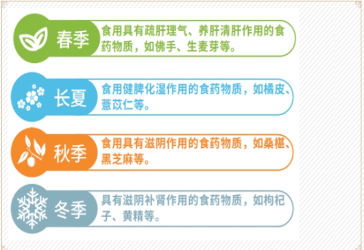 (六) 因时制宜,分季调理:人与自然是一个有机整体,在四时节律影响下,人体血脂水平会存在一定波动,针对不同季节的特点,高脂血症人群食养有不同要求。