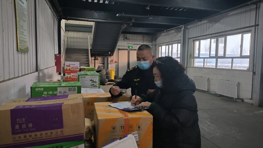 图为排查畜禽肉类产品