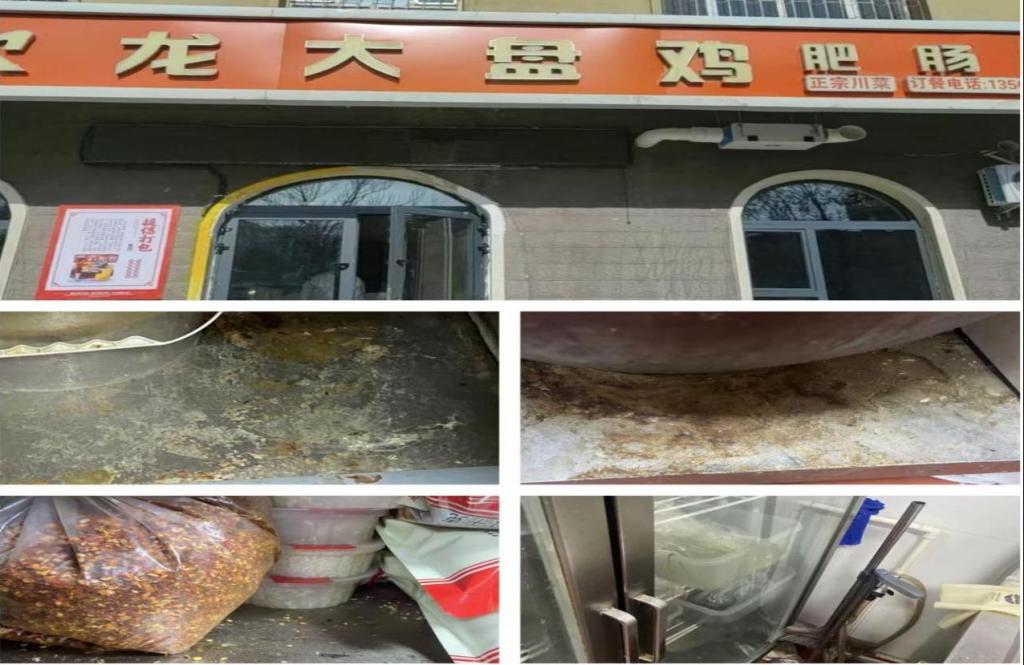 曝光理由:1.从业人员中1名工作人员健康证过期,3名从业人员没有健康证;2.外包装进入后堂;3.冷藏柜内食品摆放混乱未明码标价,未除霜;4.消毒柜未使用,未通电;5.保鲜柜内待售凉菜未覆膜存放。