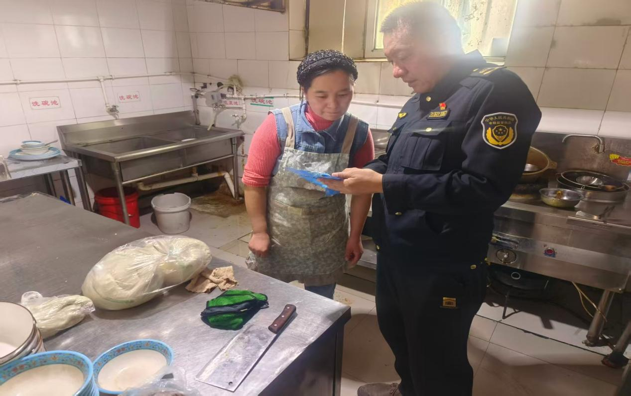 此外,执法人员还同步检查了经营主体证照公示、从业人员健康证明持有等情况,对发现的食材存放混乱、食品半成品未覆膜等问题,要求立查立改;同时向经营者开展法律法规宣传,强化其食品安全主体责任意识。