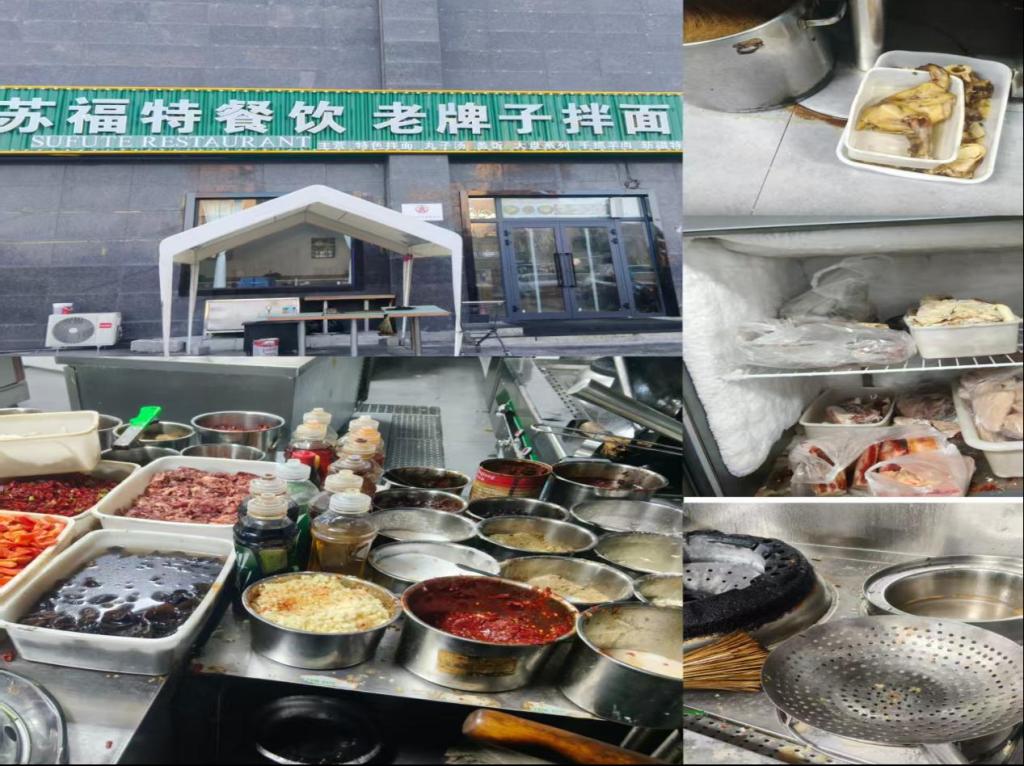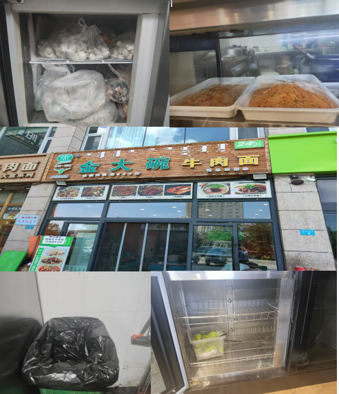 上榜理由:1.后堂存在卫生死角;2.后堂冷藏柜未除霜,有生熟混放,有剩饭放入冷藏柜的情况;3.后堂设施设备无标识;4.后堂卫生环境差,洗碗池未清理;5.操作区摆放杂乱,存在污渍;6.后堂调味品未覆膜。