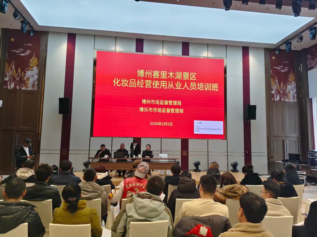 为全面提升景区旅游住宿行业化妆品安全管理水平,强化企业主体责任,规范市场经营秩序,2月5日博州、博乐市市场监督管理局联合组织辖区内景区宾馆、酒店等化妆品质量安全负责人,聚焦经营过程中使用或为消费者提供洗发水、沐浴露等服务行为以及进货查验记录不全、擅自灌装、标签不合规等痛点开展业务专题培训会。