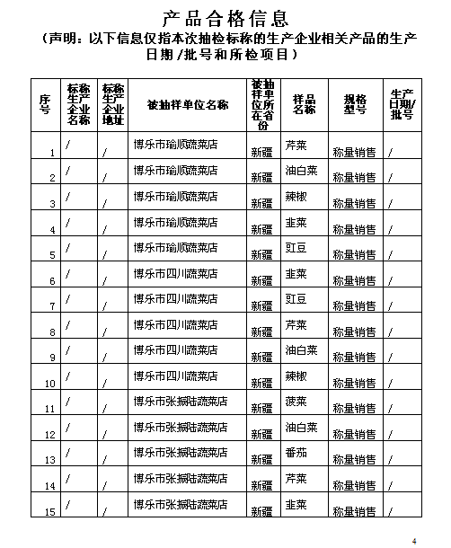 附件:食用农产品监督抽检合格信息