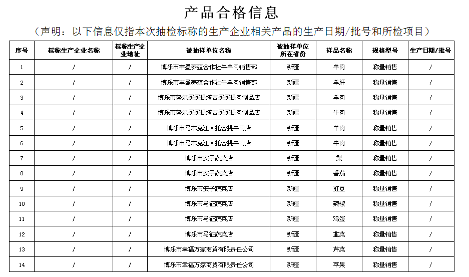 食用农产品监督抽检产品合格信息