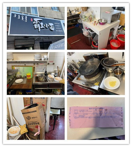 曝光原因:1.后堂环境卫生差,地面脏;2.灶台油垢多,物品摆放混乱;3.食品原材料未离墙离地摆放;4.冷藏柜食品摆放混乱,生熟食品混放;5.食品原材料未落实进货查验、索证索票未建立台账;6.拖把进入后堂,垃圾未及时清理;7.餐饮具未放入消毒柜消毒。(地址:博乐市红星路门面)