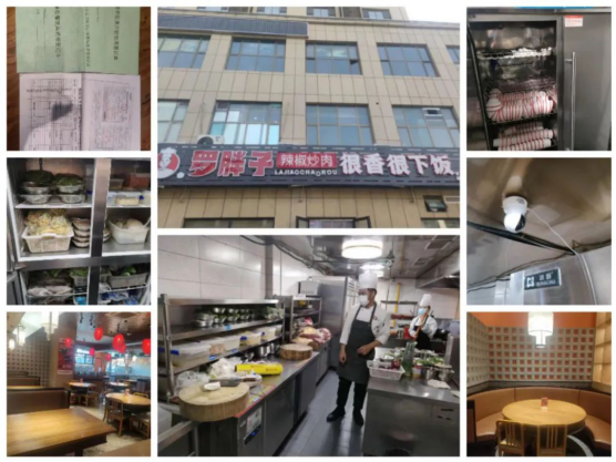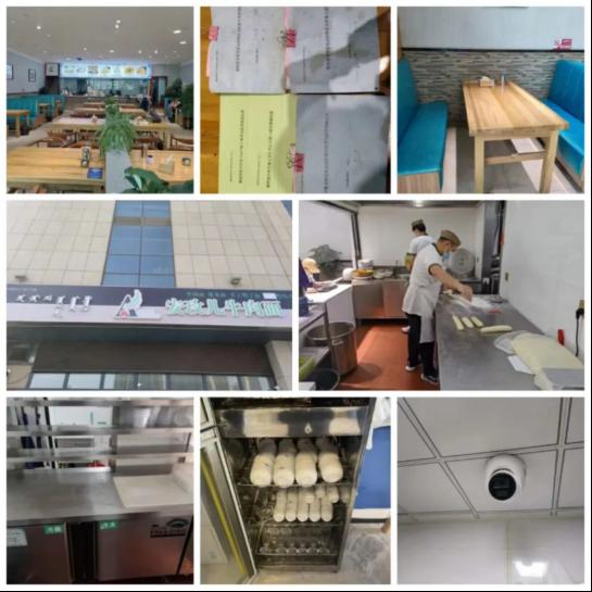 上榜理由:1.就餐环境干净整洁;2.冷藏柜食品摆放整齐;3.餐饮具分类摆放整齐;4.工作人员工作服、工作帽、口罩佩戴规范;5.进货查验台账记录完整;6.明厨亮灶已接通。