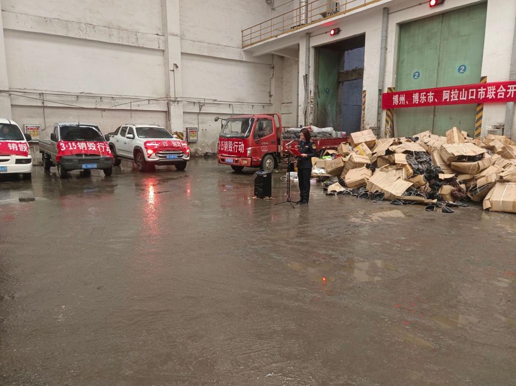 3月14日上午,博州、博乐市市场监督管理局联合多部门在博乐边境经济合作区博乐市海创环境工程有限责任公司开展2024年“3.15”集中销毁假冒伪劣商品行动。市场监管、公安、农业农村、文旅、烟草等州、市两级消费维权工作领导小组成员单位共9个部门代表55人参加现场活动,州、市生态环境局领导受邀作无害化监销。