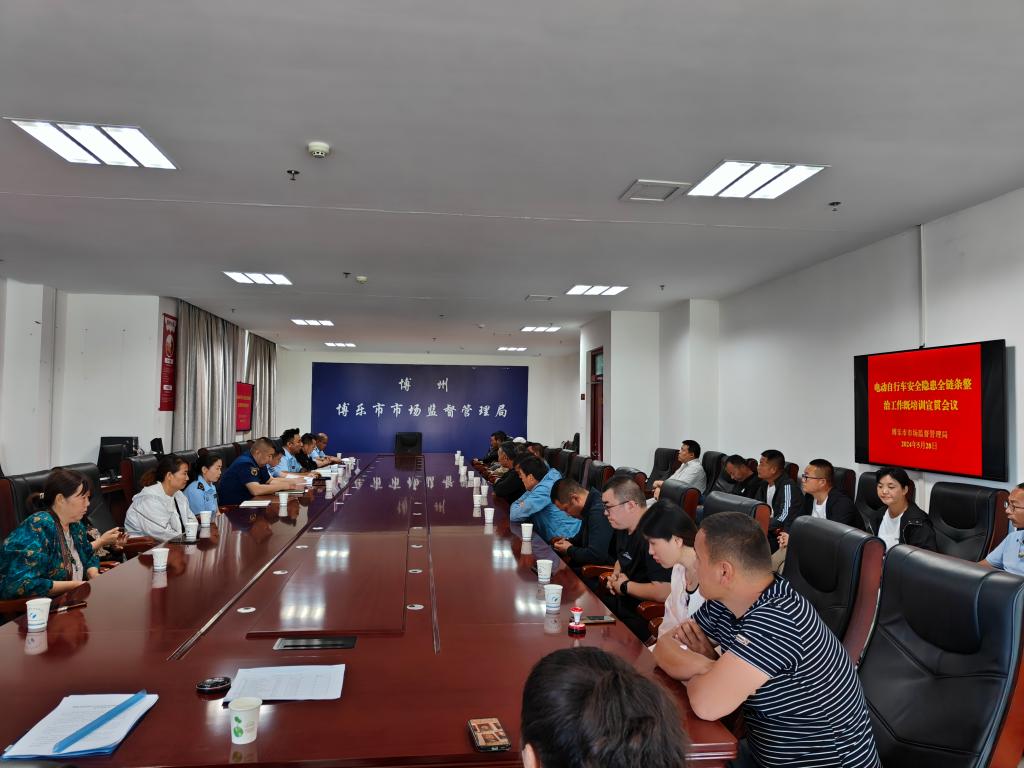 为贯彻落实《自治区市场监管系统电动自行车安全隐患全链条整治行动专项方案》指示精神,5月28日博乐市市场监督管理局联合博尔塔拉蒙古自治州公安局食品药品环境犯罪侦查分局、博乐市公安局交通管理大队、博乐市消防救援大队等部门组织召开电动自行车安全隐患全链条整治工作既宣贯会议,有关销售、维修电动车及外卖领域的相关负责人员,共计40余人参会。