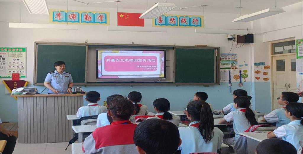三是在质量安全进校园宣讲中,走进博乐市第六小学,利用该校活动课时间,开展学生用品和儿童玩具、校服质量安全进校园宣传活动。通过多媒体PPT演示、实物展示、实时互动、宣传和科普学生用品、儿童玩具的质量安全知识,普及快速甄别优劣玩具、文具、校服等产品的方式方法,为孩子们送去了一堂生动有趣、干货满满的产品质量安全知识课堂。