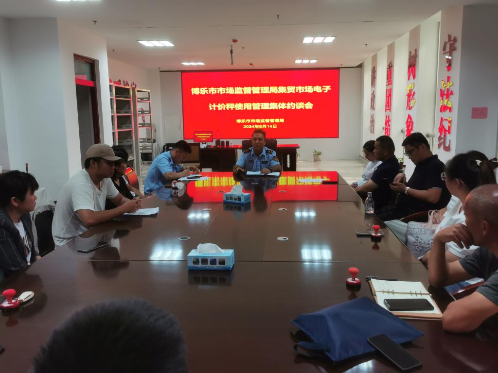 为坚决遏制“短斤少两”的计量违法行为,严守民生计量底线,6月14日,博乐市市场监督管理局组织博乐市14家农贸市场及集贸市场负责人开展电子计价秤使用管理集体约谈会和公开承诺活动。