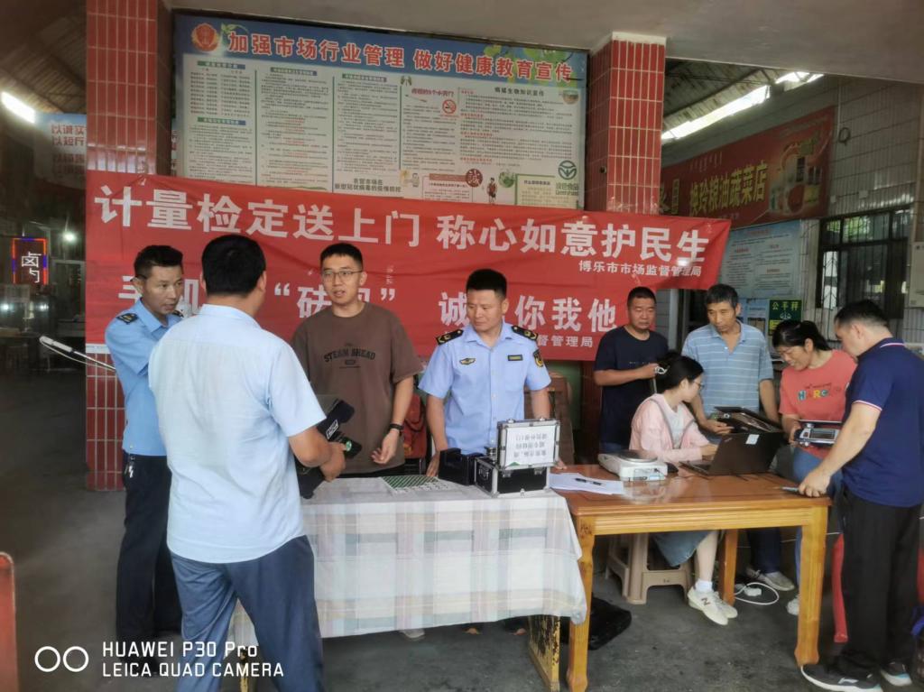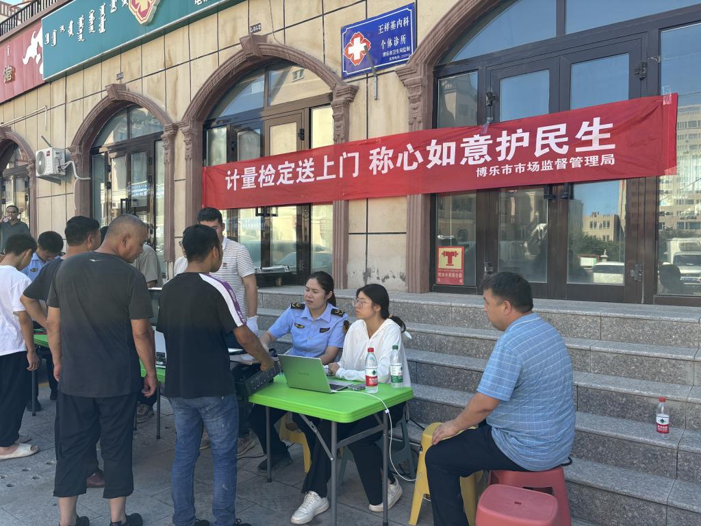 为进一步维护计量市场秩序,营造公平、诚信、有序的市场经营环境,7月份起博乐市市场监督管理局会同博州计量所、博乐市青得里街道、南城街道联合开展多起“计量检定送上门秤心如意护民生,手机变“砝码”诚心你我他”活动。