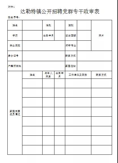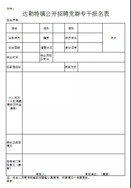 1.达勒特镇面向社会公开招聘党群专干报名登记表