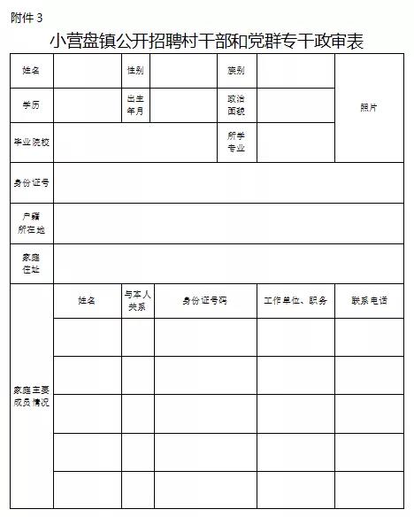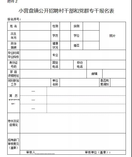 2.小营盘镇面向社会公开招聘村干部和党群专干报名表