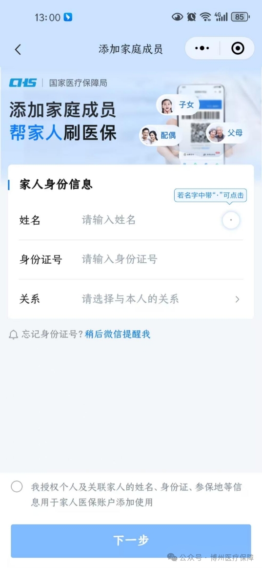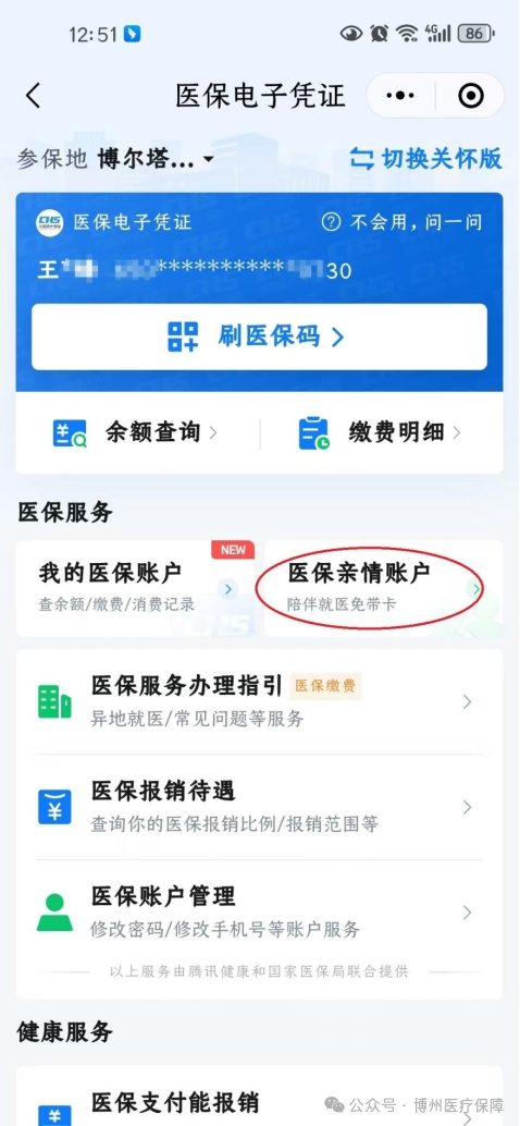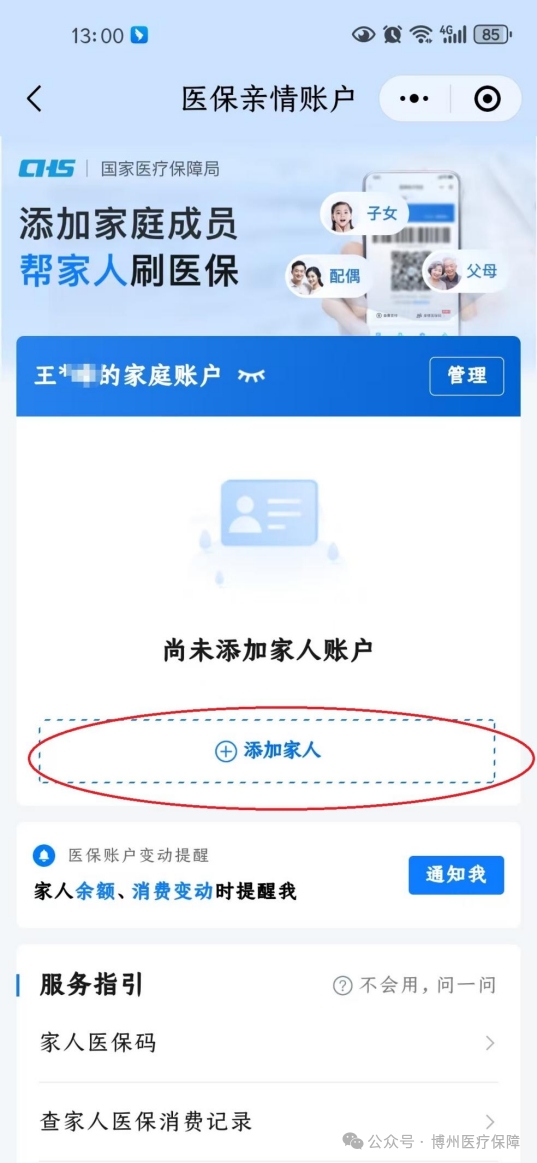 还可以为不使用手机的老人、小孩添加家庭成员,帮助他们激活并使用医保码(医保电子凭证)。
