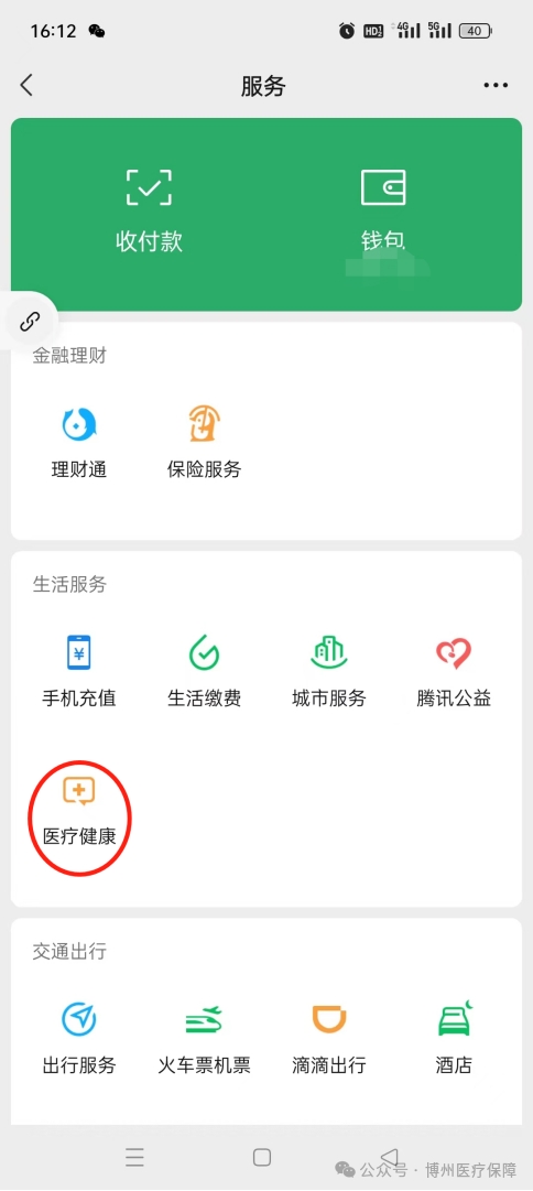 第三步:点击“医疗健康”;