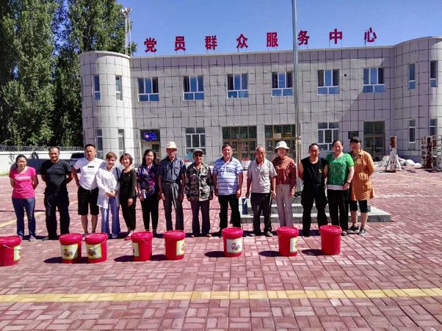 大家分头行动给各自的结亲户们送去了一桶桶滴灌有机肥,并为他们进行农业生产技术指导,如滴灌肥的正确使用方法和病虫害的防治等等……,用自己的实际行动进行真情帮扶,为结亲户切实办实事办好事。