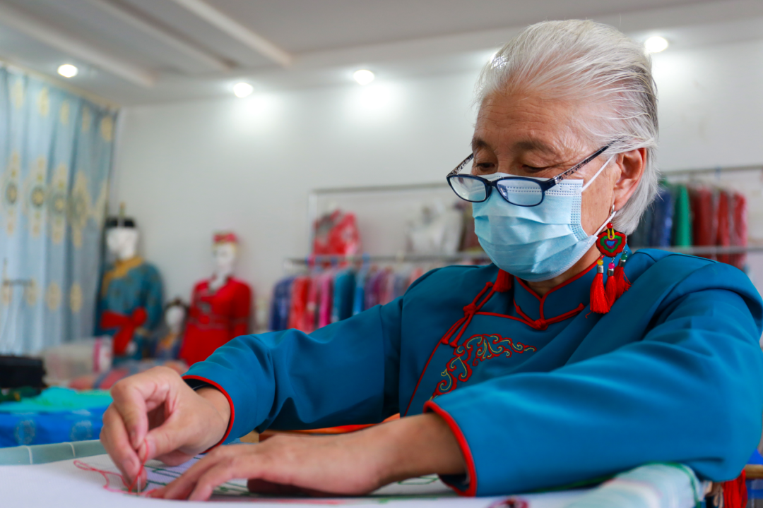 在博乐市顾里木图街道西郊社区民族手工室中非遗传承人敖特哈说:“没有共产党,哪来我们的好日子,在党的二十大召开之际,我想用刺绣绣出对伟大的祖国伟大的党的感激之情,同时我祝愿,我们伟大的祖国,越来越好,繁荣昌盛。”
