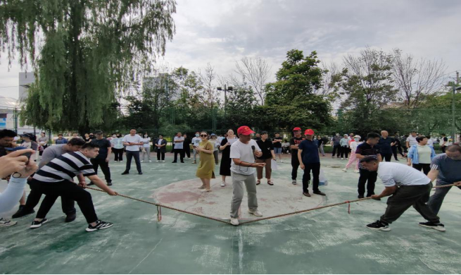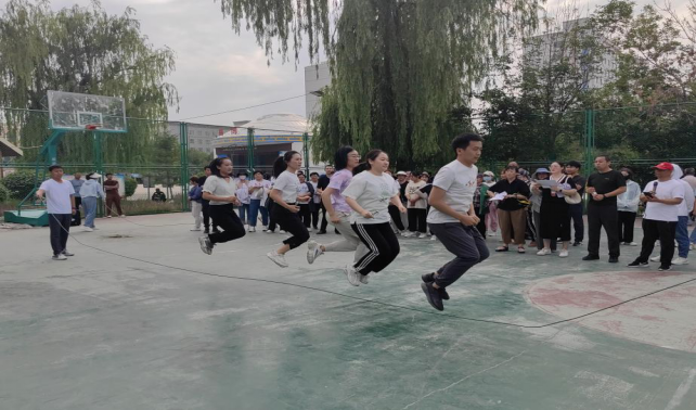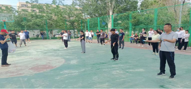 运动会以企业为单位参赛,设置了拔河比赛、1分钟踢毽子、1分钟跳跳绳和团体跳绳共4个比赛项目,在烈日炎炎下,选手们挥汗如雨,周围加油声、紧张又激动的呐喊声一阵高过一阵。