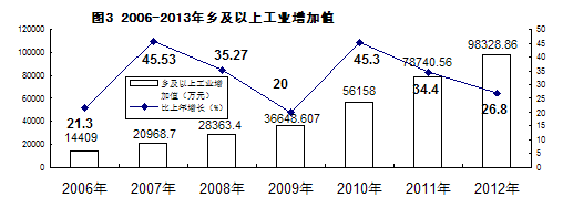 全市乡及乡以上工业企业生产累计完成工业增加值9.83亿元,同比增长26.8%。其中:轻工业累计完成工业增加值2.15亿元,同比增长2.6%。重工业累计完成工业增加值7.60亿元,同比增长35.7%。棉纱3741吨,同比增长5.17%;自来水648万立方米,同比增长19.78%;供热量128万吉焦,增长4.76%;电力供应117540万千瓦时,同比增长48.64%;发酵酒精(折96度,商品量)30808千升,同比增长45.48%;水泥50.2万吨,同比增长20.32%;商品混凝土60.3万立方,同比增长1.8倍;轻质碳酸钙6.16万吨,同比增长71.65倍;塑料制品14914吨,同比增长52.64%;发电量4196万千瓦小时,同比增长13.6%;氧化钙82.73万吨,同比增长24.74%;天然气1421万立方,同比下降36%。